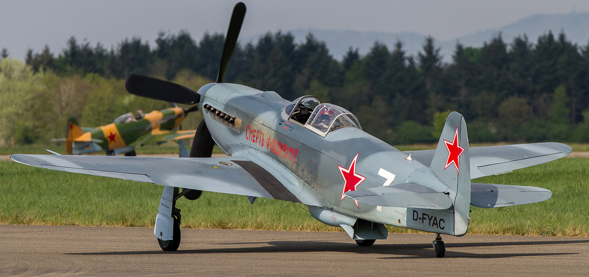 Am 12.04.2014 hatten wir wieder in Bremgarten die Gelegenheit, einige Warbirds Air2Air in ihrer "natürlichen" Umgebung zu fotografieren. Diesmal standen vornehmlich Flugzeuge aus dem Hause Jakowlew auf dem Plan.