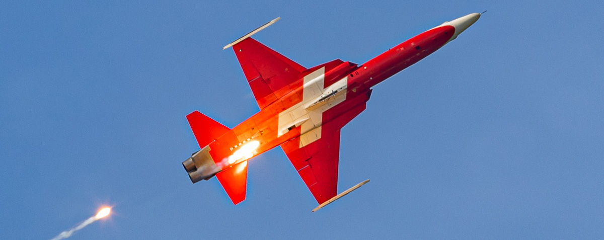 Der Zugang zur größten zivilen Airshow der Schweiz war leider nicht optimal geregelt. Somit staute sich der Verkehr schon auf der Autobahn und es dauerte seine Zeit, bis wir das Gelände erreichten. Dadurch konnten wir nicht alle Programmpunkte geniesen. Der Blick ins Programmheft, in den Himmel (Sonne) und zum Hintergrund (Berge) stimmte uns allerdings wieder versöhnlich. Vor Ort wurde recht viel Werbung für die Beschaffung eines neuen Kampflugzeuges für die Schweizer Luftwaffe gemacht. Die Hersteller des Eurofighter, der Rafale, der Gripen und der F-35 buhlten mit einer Vielzahl an Werbeartikeln um die Gunst der Airshow-Gäste. Der Eurofighter wiederum kämpfte wieder gegen technische Mängel und musste sein Display auch abbrechen. Erstaunlicherweise tat man bei Saab so, als wenn sie immer noch am Ausschreibungsprozess teilnehmen würden. Die Schweden boten auch das Highlight der Airhow, den Saab AJS-37 Viggen Doppelsitzer des Swedish Air Force Historic Flight. Während leider keine F-35 den Weg nach Mollis gefunden hatte, führte die Dassault Rafale mit Abstand das beste Jet-Display vor. Typisch für eine Schweizer Airshow war auch die Luftwaffe mit fast allen Beiträgen wie der F-18 Demo, der Patrouille Suisse und dem Super Puma dabei. Nur das PC-7 Team war andersweitig verplant.